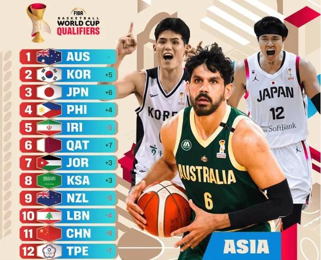 12月4日,国际篮联官方更新亚洲实力榜,其中澳大利亚毫无疑问继续领跑亚洲,韩国和日本排名第二和第三名,而中国男篮则跌落到第11名!