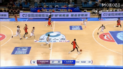 第二节末段徐杰奎因回归,广东队进攻重新回到正轨,奎因上演一条龙突破+三分4分钟连得10分,徐杰面对徐昕飚进超远三分,但也“助攻”逄砚钧命中中场压哨超远神仙三分,凭借一波4分钟15-7,半场战罢广东队取得49-39领先。